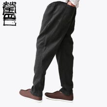 莹罡凤鸣2017亚麻长裤水洗小脚裤亚麻哈伦裤棉麻休闲裤垮裤男宽松