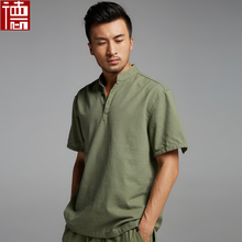 德风堂 青岚 棉麻男士夏季唐装短袖中式套头V领休闲衣 舒适潮款