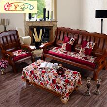 田园防滑带靠背红实木组合沙发坐垫定制加厚拆卸海绵绑椅垫抱枕