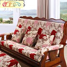 带靠背红实木组合沙发坐垫定制加厚拆卸海绵绑椅垫抱枕田园防滑