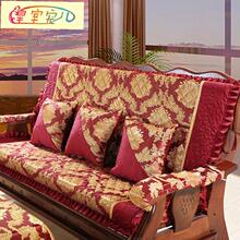 订做欧式加大四季带靠背海绵红实木组合沙发坐垫加厚田园布艺连体