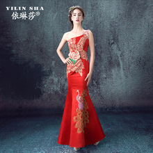 2017新款新娘敬酒服单肩结婚礼服订婚女中国风长款修身鱼尾晚礼服