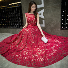 敬酒服新娘结婚晚礼服红色蕾丝鱼尾结婚礼演出主持晚礼服2017新款