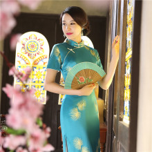 伊人日常丝绸旗袍复古民族风改良时尚旗袍裙长款修身演出连衣裙