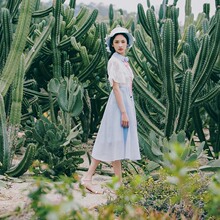 花间裳/旅行的意义/原创淑女假两件拼接欧根纱绣花连衣裙 夏新款