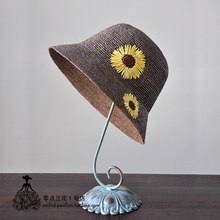 帽子 女毛呢韩式日系圆顶小檐渔夫帽复古秋冬盆帽优雅花朵小礼帽