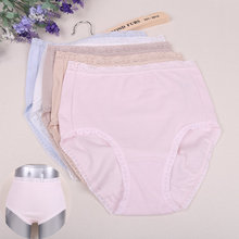 外贸 女士纯色蕾丝花边弹力三角内裤 特价纯棉内裤 中高腰大码