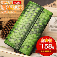 隽岚正品真皮编织女士钱包潮韩版时尚羊皮长款三折拉链女皮夹钱夹