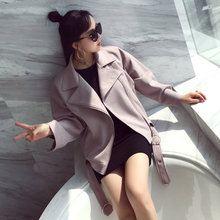 韩版粉色鹿皮绒外套女短款夹克春季薄款2017新款春秋麂皮绒短外套