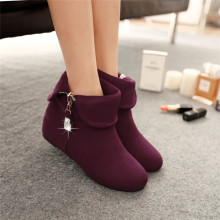 2015时尚酒红色女靴子秋冬季女鞋侧拉链短靴妈妈鞋平底孕妇马丁靴