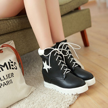 2014秋冬新款淑女靴子侧拉链毛毛靴超高跟坡跟女学院风短靴马丁靴