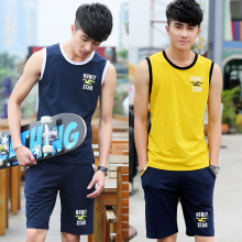 健身服男士背心无袖T恤休闲运动套装韩版五分裤学生篮球服跑步服