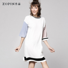 Zopin作品春夏新款撞色风琴褶假两件时尚简约欧美H型连衣裙