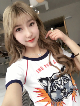 2017春夏新款 明星同款狗头脸谱T恤棉印花T短袖圆领百搭上衣女装