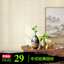 中式壁纸墙纸古典无纺布客厅卧室书房电视背景墙现代素色墙纸回纹