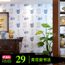 青花瓷书法字画中式壁纸古典书房 餐厅客厅茶楼壁纸饭店壁纸墙纸