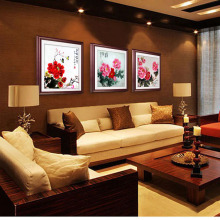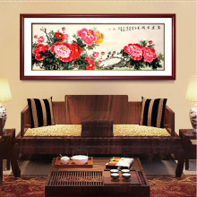 中式古典装饰画客厅茶楼壁画有框画玄关餐厅挂画牡丹花开富贵墙画