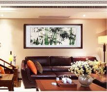中式客厅水墨竹子挂画公办公室餐厅装饰画书房壁画国画红木有框画