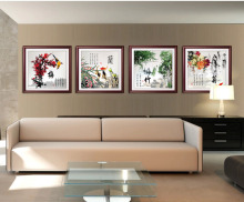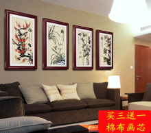 梅兰竹菊四联中式古典装饰画客厅茶楼壁画有框画玄关餐厅挂画墙画