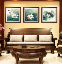 紫腾随轩中式荷莲花国画红木有框画客厅卧室餐厅墙画壁画