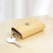 飘生活 方款搭扣/挂绳手工缝制真皮零钱包头层牛皮收纳包包邮
