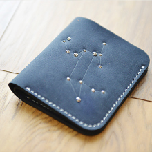 飘生活 手工定制牛皮镶钻星座钱包男女士短款钱夹横款真皮钱包