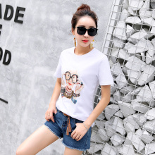 2017夏装新款女装潮韩版时尚宽松圆领印花T恤打底衫女