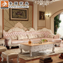 欧式真皮沙发 实木雕花客厅别墅户型家具组合 头层牛皮转角沙发