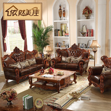 欧式真皮沙发 客厅组合 小户型实木雕花住宅家具欧式皮艺沙发