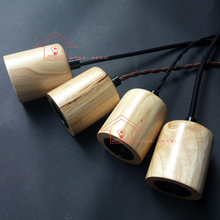 原木E27灯头灯座带吊灯线 北欧宜家美式复古工业灯饰灯具配件diy