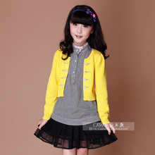 2016春秋款童装上衣 女童韩版纯棉假两件毛衣 女孩薄款套头针织衫