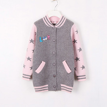 2016秋冬新款童装女童韩版加厚棒球服外套女大童中长款针织开衫潮