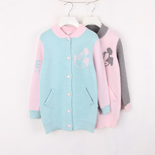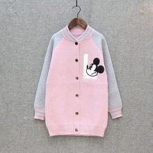 女童韩版中长款棒球服外套 2016秋冬款儿童加厚针织衫开衫 米老鼠