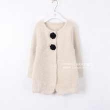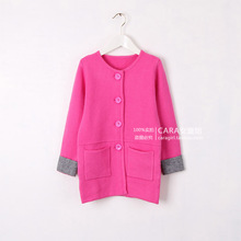 秋冬款童装毛衣 女童加厚羊绒开衫外套 儿童韩版暗扣中长款羊毛衫