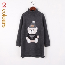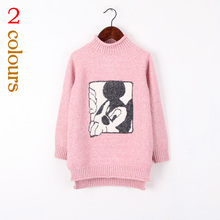 2016冬季女童韩版长款加厚毛衣中大童修身卡通半高领羊毛衫针织衫