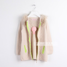 秋冬款童装毛衣 女童韩版中长款加绒加厚开衫外套 中大童拉链外套