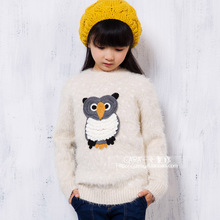 秋冬新款童装毛衣 女童圆领马海毛针织衫 中大童加厚套头衫猫头鹰