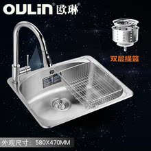 欧琳水槽 304不锈钢洗菜盆龙头套餐OL2101 超大单槽58×47cm