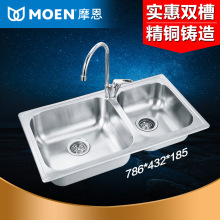 摩恩304不锈钢厨房净铅龙头加厚水槽厨盆洗菜盆双槽套装28104SLS