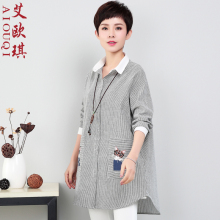 棉麻衬衫女长袖2017新款休闲宽松亚麻中年女装春装大码衬衣中长款