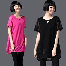 加肥加大码女装 胖MM夏装20157印花透明超薄雪纺衬衣衬衫裙连衣裙