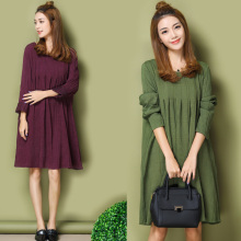长袖连衣裙2016秋季女装新款潮宽松显瘦大码圆领压褶雪纺连衣裙子