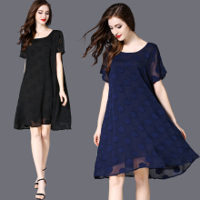 时尚大码女装 胖MM夏装新款2017波点A字宽松雪纺短袖连衣裙胖妹妹