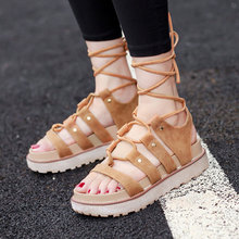 2017新款交叉绑带罗马凉鞋女夏平底学生复古百搭厚底韩版松糕原宿