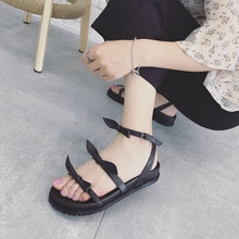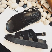 凉鞋女夏平底韩国学生复古罗马百搭韩版厚底松糕跟黑色平跟原宿潮