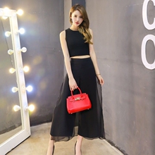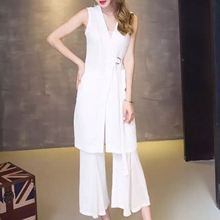 BOSSY LADY2017时尚修身无袖雪纺外套高腰阔腿裤长裤两件套装女新