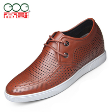 2016新款高哥内增高男凉鞋6cm男士夏季透气商务真皮凉鞋洞洞皮鞋