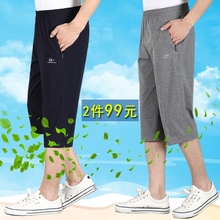 夏季薄款加大码宽松直筒休闲中老年运动裤男短裤七分裤棉中年男裤