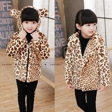 儿童仿皮草外套豹纹甩连帽西装领毛毛大衣外套兔毛不掉毛厂家直销