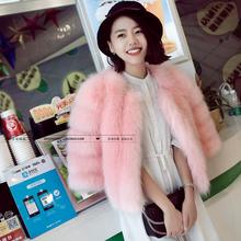 2015新款仿皮草占领立领气质粉色仿狐狸毛毛皮草外套大衣短款白毛